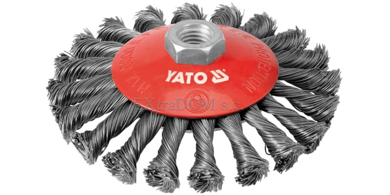 Talerzowa szczotka druciana marki Yato średnicy 125mm z drutem splatanym wykonanym ze stali INOX. Wysokiej jakości szczotka do pracy szlifierką kątową dla zastosowań profesjonalnych.