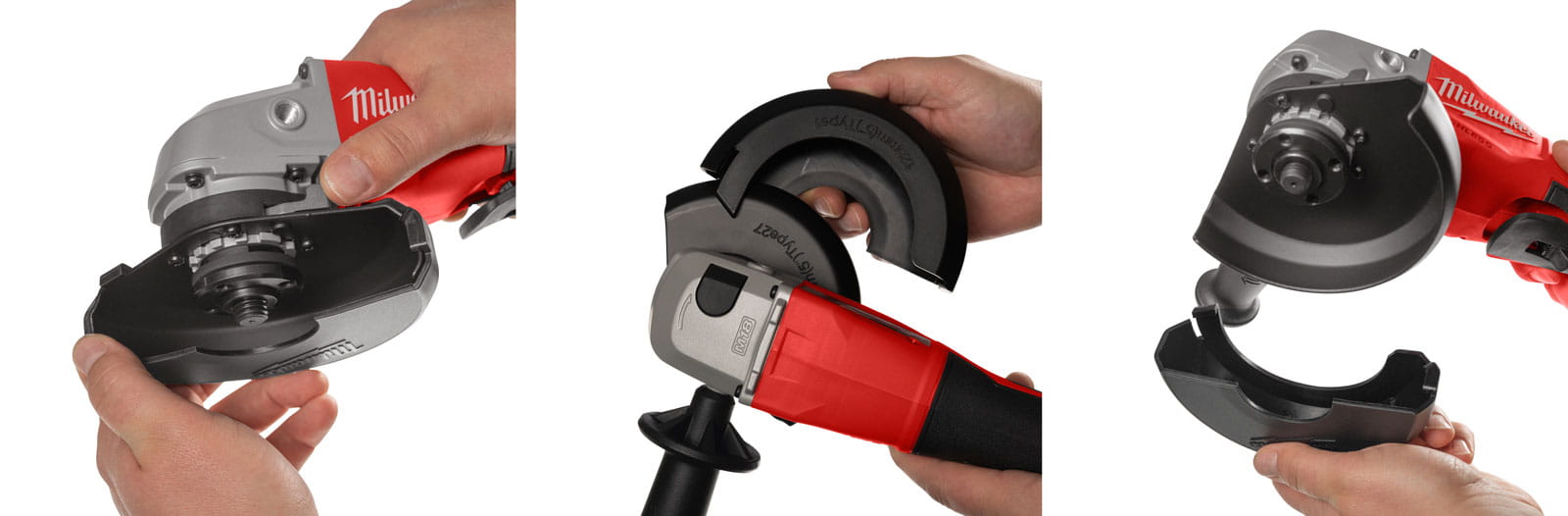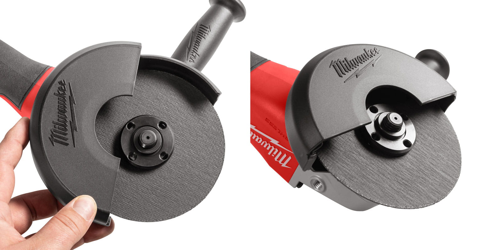 - Beznarzędziowa zmiana osłony = szybciej dostosowujesz ustawienie szlifierki do aktualnego zadania i ograniczasz niepotrzebne przestoje.