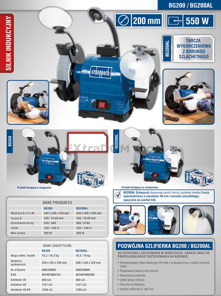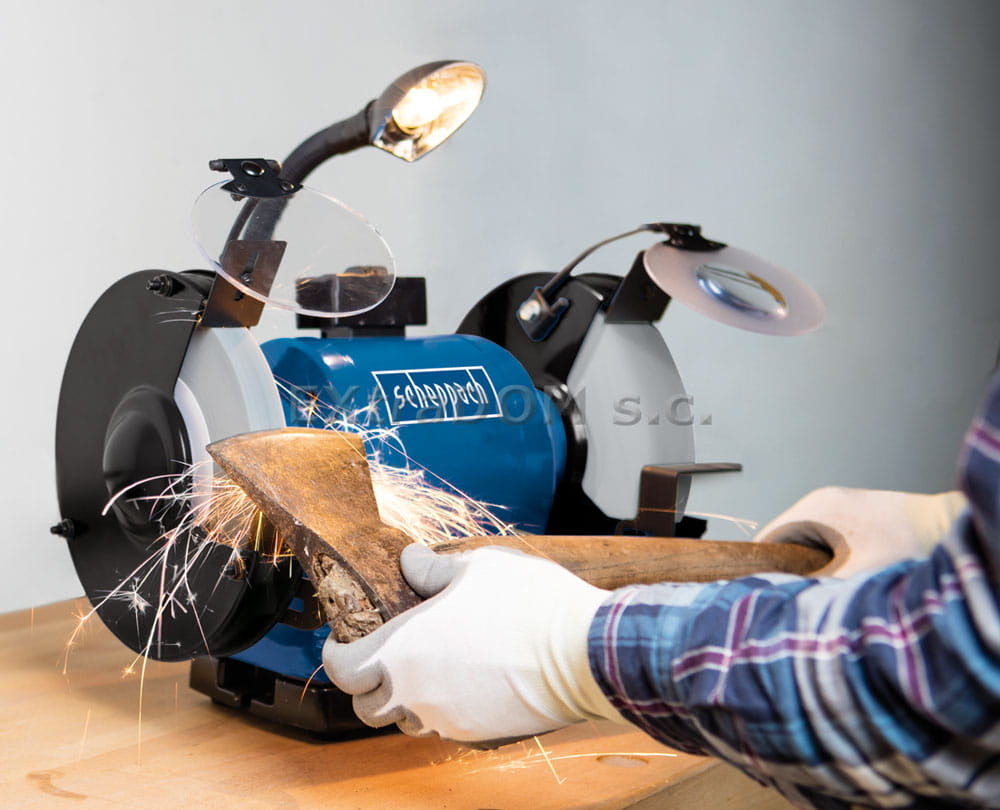 Dwutarczowa szlifierka stołowa BG200 firmy Scheppach z tarczami średnicy 200 mm. Uniwersalna, dobra zarówno dla hobbysty jak i w rzemiośle oraz zastosowaniach profesjonalnych.