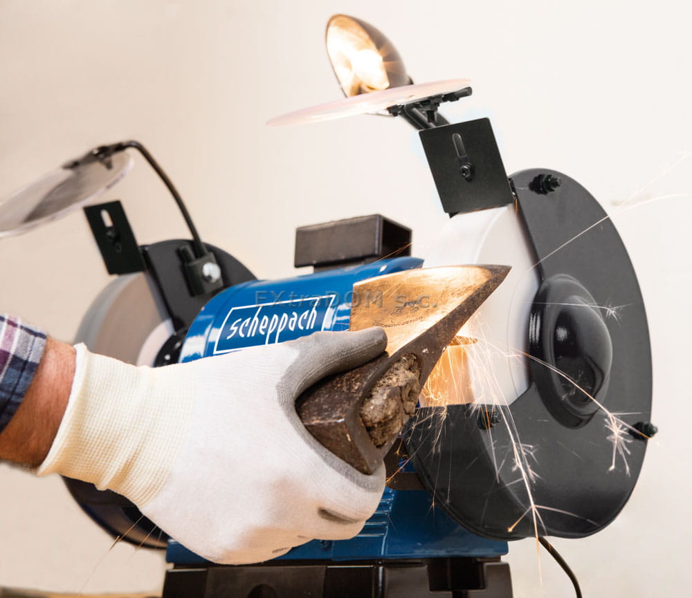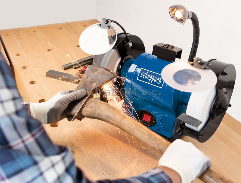 Dwutarczowa szlifierka stołowa BG200AL firmy Scheppach z tarczami średnicy 200 mm. Uniwersalna, dobra zarówno dla hobbysty jak i w rzemiośle oraz zastosowaniach profesjonalnych.