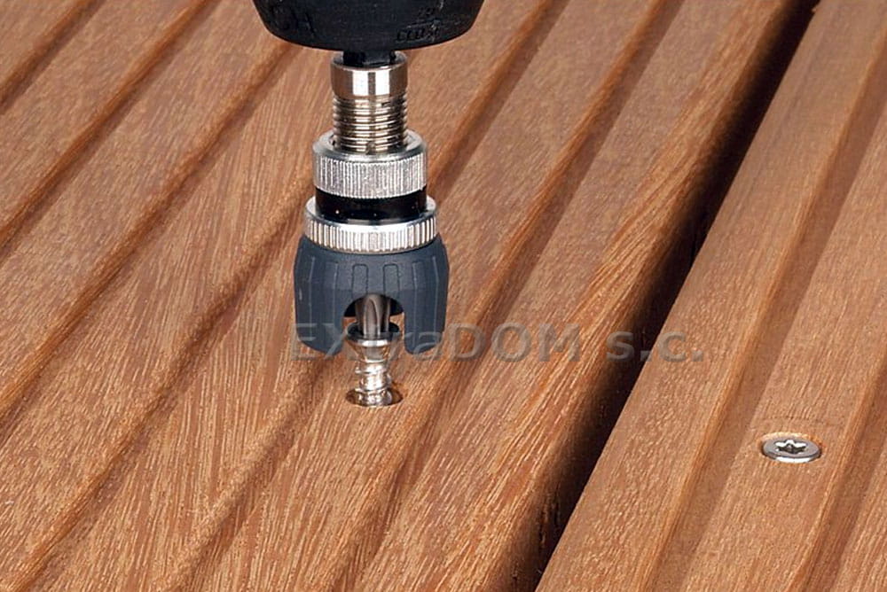 - w zestawie z końcówką TX ze stali nierdzewnej - ochrona łba wkręta przed zardzewieniem,