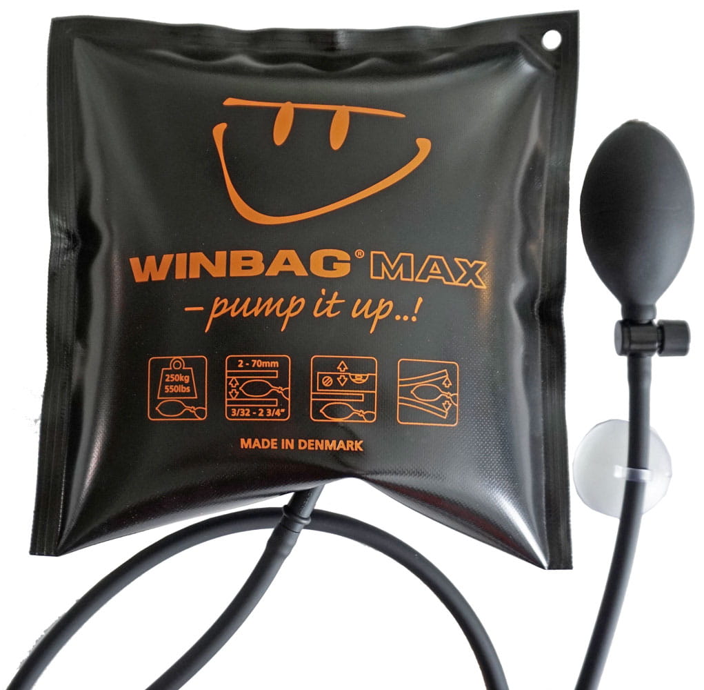 - WINBAG MAX wyposażony w wąż o długości 150 cm oraz przyssawkę, rozwiązanie to pozwala na stała obserwację pozycjonowanego elementu i jednoczesne używanie poduszki bez potrzeby odrywania wzroku. Szczególnie istotne przy pracy z dużymi gabarytami.