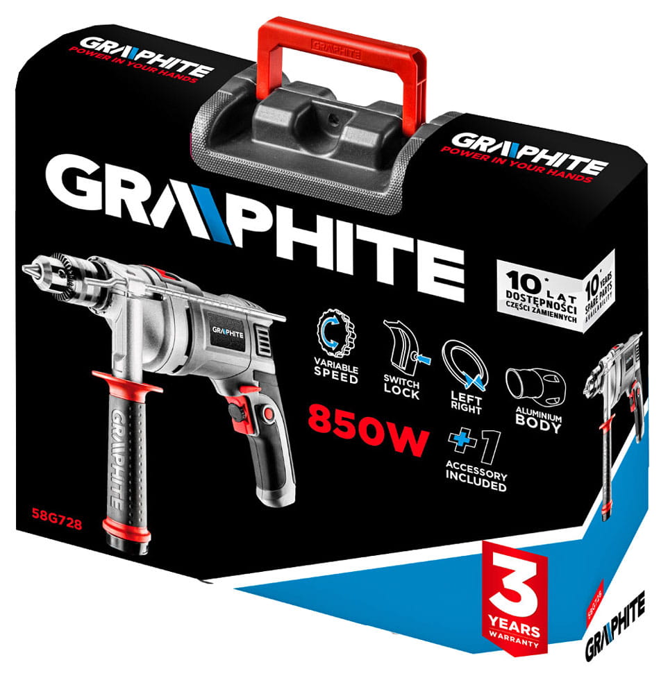 Wiertarka udarowa Graphite 850W w walizce 58G728