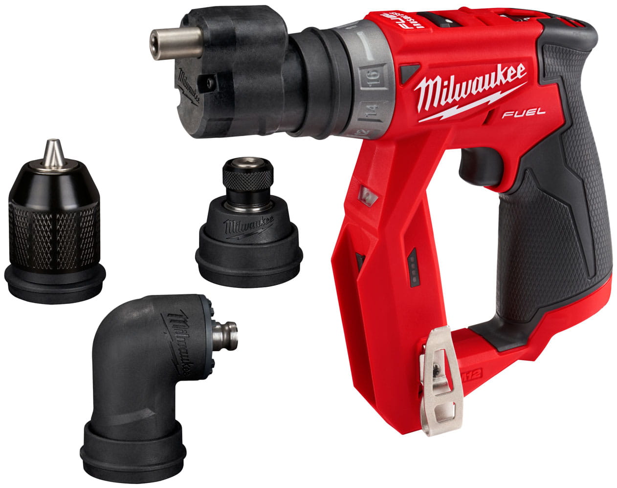 Bezszczotkowa wiertarko – wkrętarka Milwaukee M12FDDXKIT z 4 wymiennymi głowicami w walizce z momentem obrotowym 34Nm. Wyjątkowo praktyczny zestaw 4 w 1 do wkręcania i wiercenia w ciasnych miejscach. Wersja z dwoma akumulatorami 6.0 Ah i ładowarką w walizce HD Box.