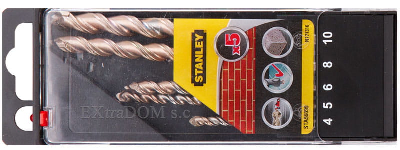 Wiertła precyzyjne do betonu, muru, cegły, pustaka Stanley kpl. 5 szt. z uchwytem walcowym STA56099