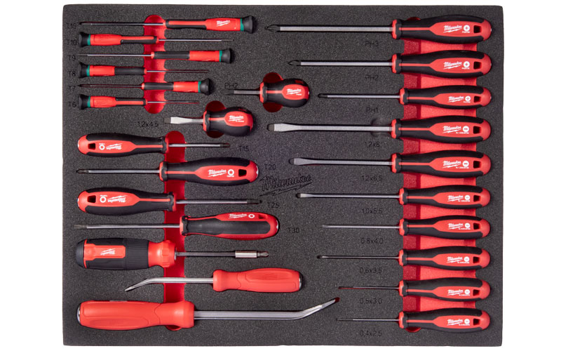 Wkładka piankowa Milwaukee z zestawem wkrętaków i narzędzi do podważania 38 cz. 4932500755 - Szybkie przygotowanie do serwisu