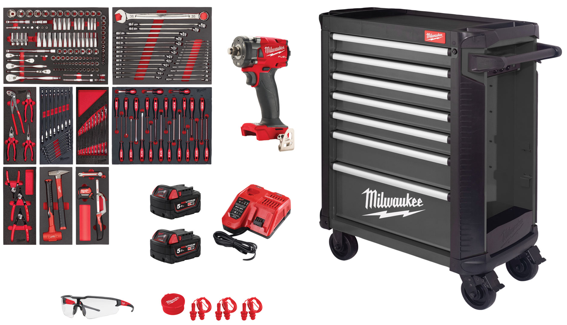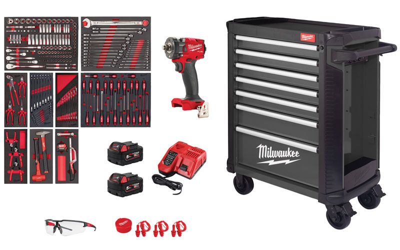 Wózek narzędziowy Milwaukee TOOLGUARD™ 30″ / 78cm z 7 szufladami w zestawie z 246 narzędziami - wersja premium 4932500743