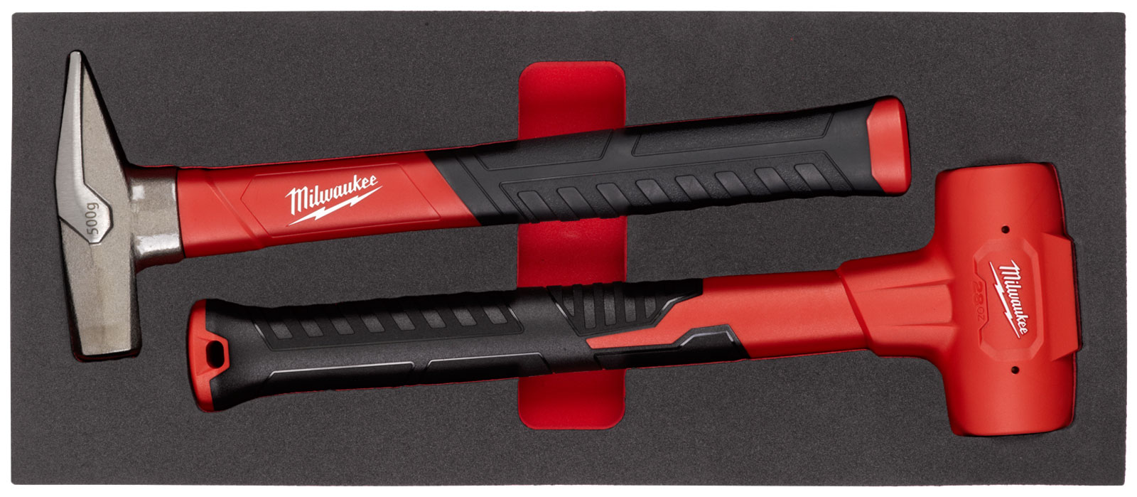 - 4932493253 – wkładka z młotkami: młotek ślusarski z trzonkiem z włókna szklanego 500g, młotek bezodrzutowy 790g