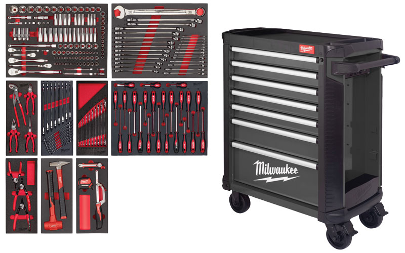 Wózek narzędziowy Milwaukee z wyposażeniem 206 narzędzi 4932500744