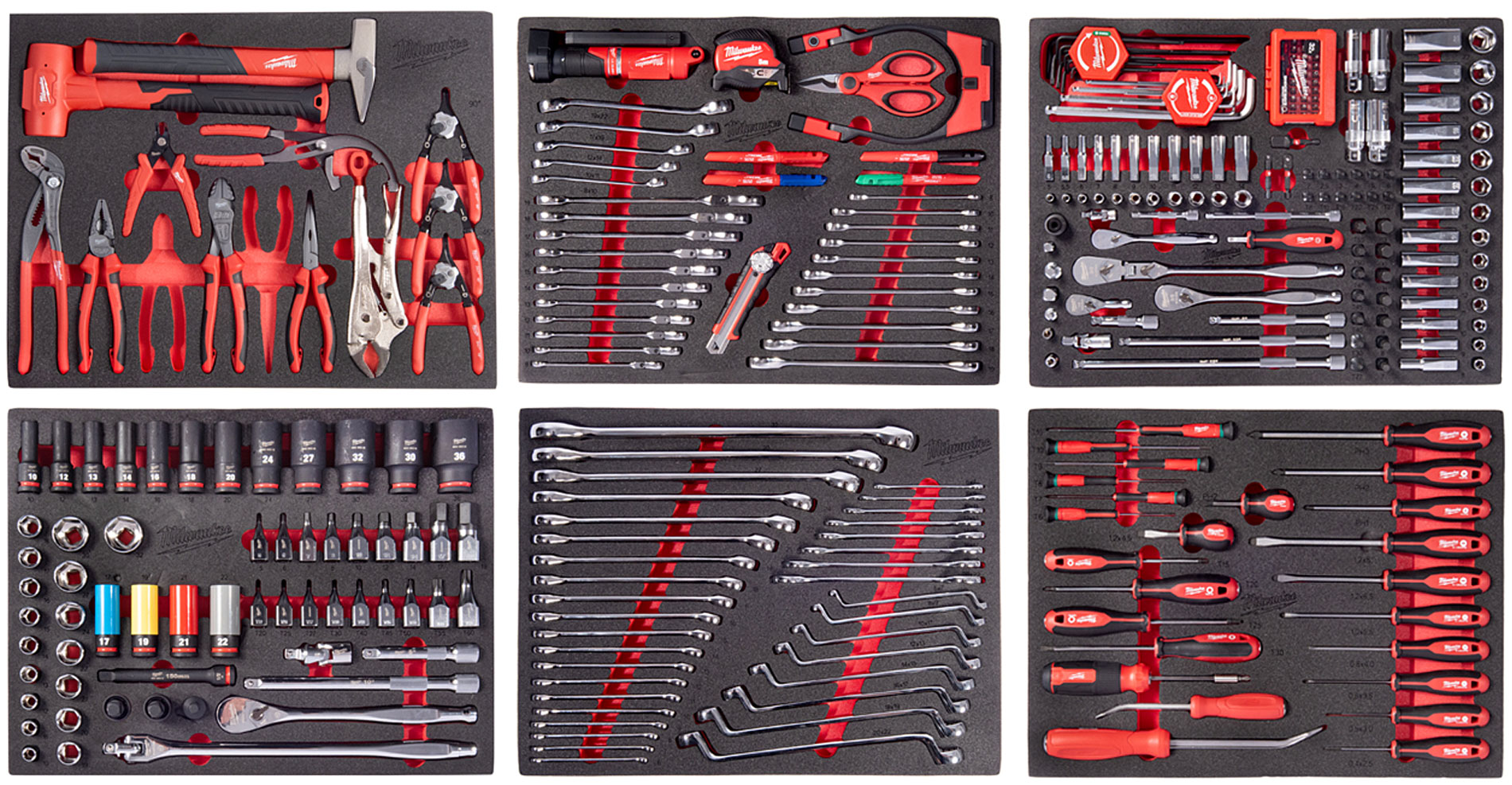 Profesjonalne wkładki piankowe Milwaukee odporne na olej i zabrudzenia zapewniają idealną organizację narzędzi oraz szybki dostęp do każdego elementu. Każde narzędzie posiada swoje dedykowane miejsce.