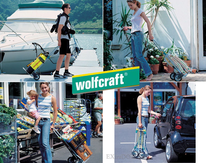 Składany wózek transportowy niemieckiej firmy Wolfcraft. Uniwersalny wózek do zastosowania w mobilnym serwisie i transporcie towarów. Bardzo solidny i lekki jednocześnie, prawdziwy "Mercedes" wśród wózków.