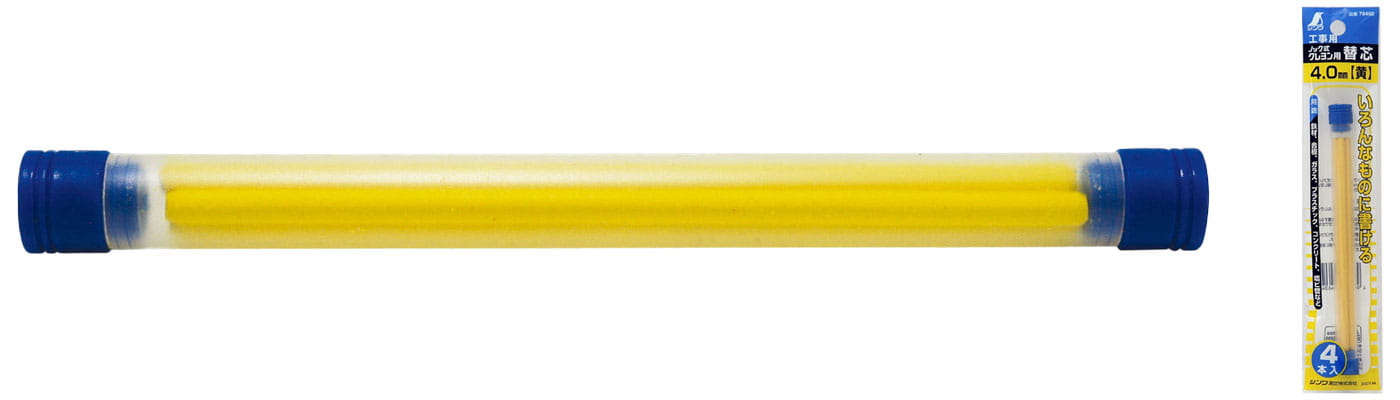 Zapasowy grafit 4mm firmy Shinwa w żółtym kolorze. W komplecie 4 sztuki. Pasuje do każdego ołówka automatycznego Shinwa na grafity 4 mm. Grafit do pisania - znaczenia - trasowania na wszelkich materiałach gdzie tradycyjny, szary grafit jest słabo widoczny lub nieczytelny.