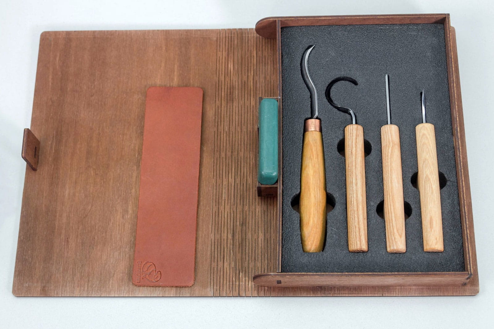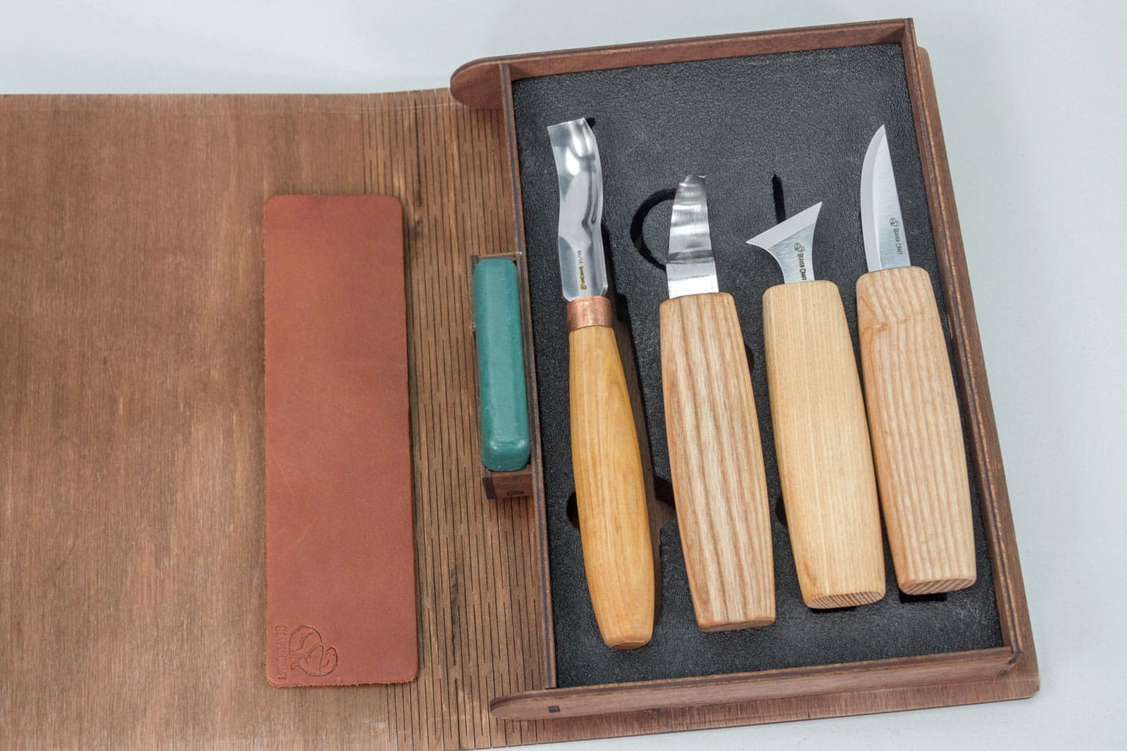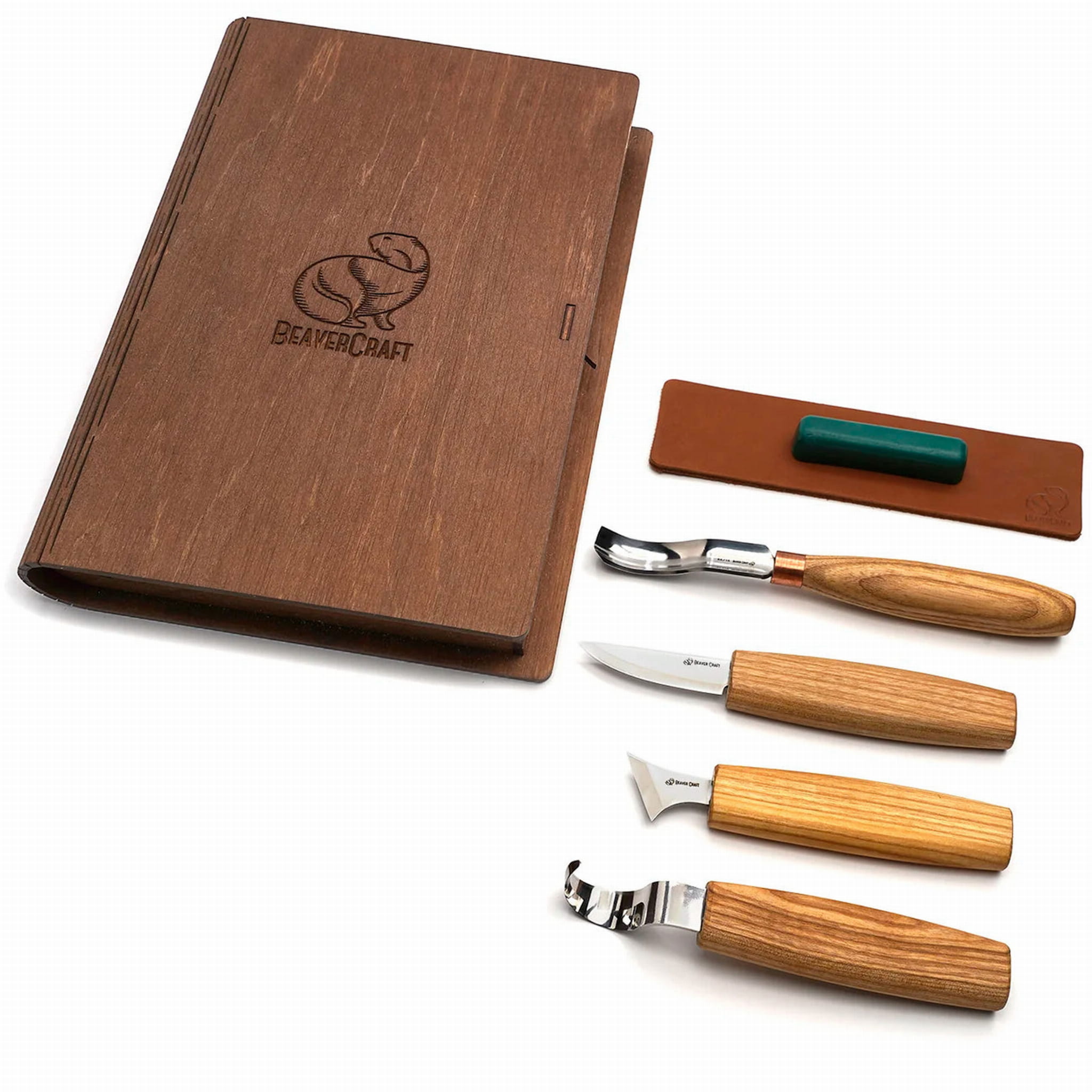 Zestaw do rzeźbienia BeaverCraft w drewnianym etui, 4 narzędzia + akcesoria do polerowania S19 Book