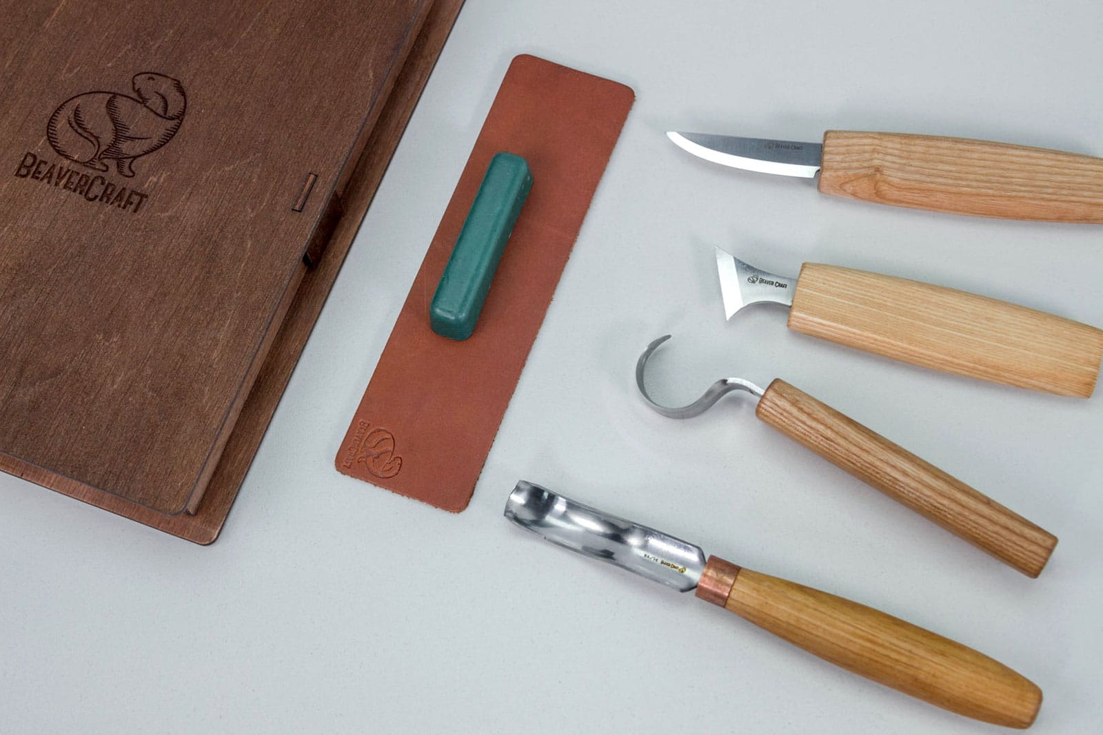 Zestaw do rzeźbienia BeaverCraft w drewnianym etui + akcesoria do polerowania S19 Book
