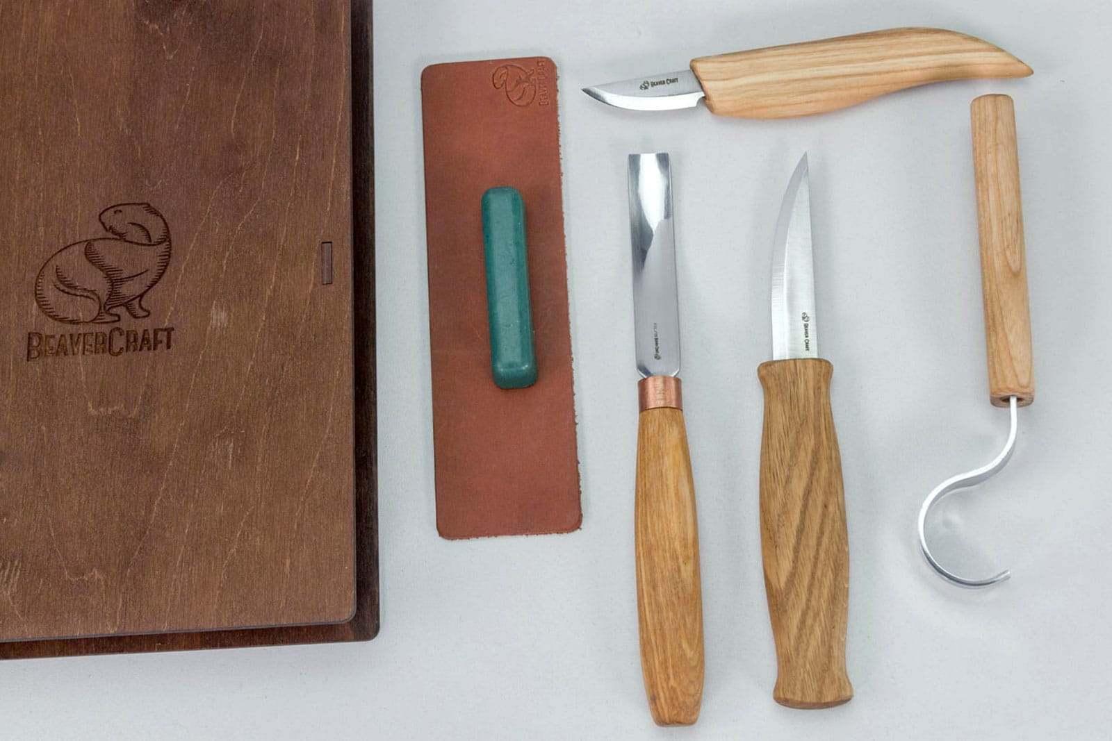 Zestaw do rzeźbienia BeaverCraft w drewnianym etui + akcesoria do polerowania S43 Book