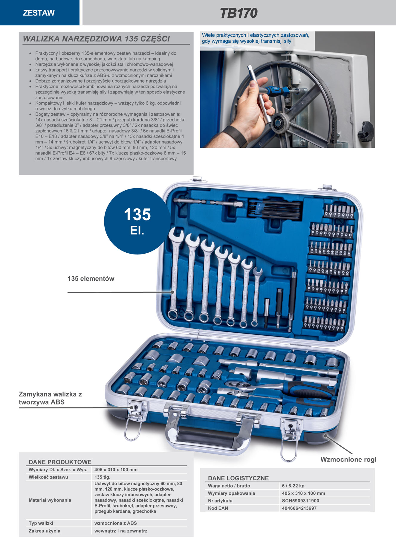 Zestaw narzędzi w walizce 135 cz. Scheppach TB170